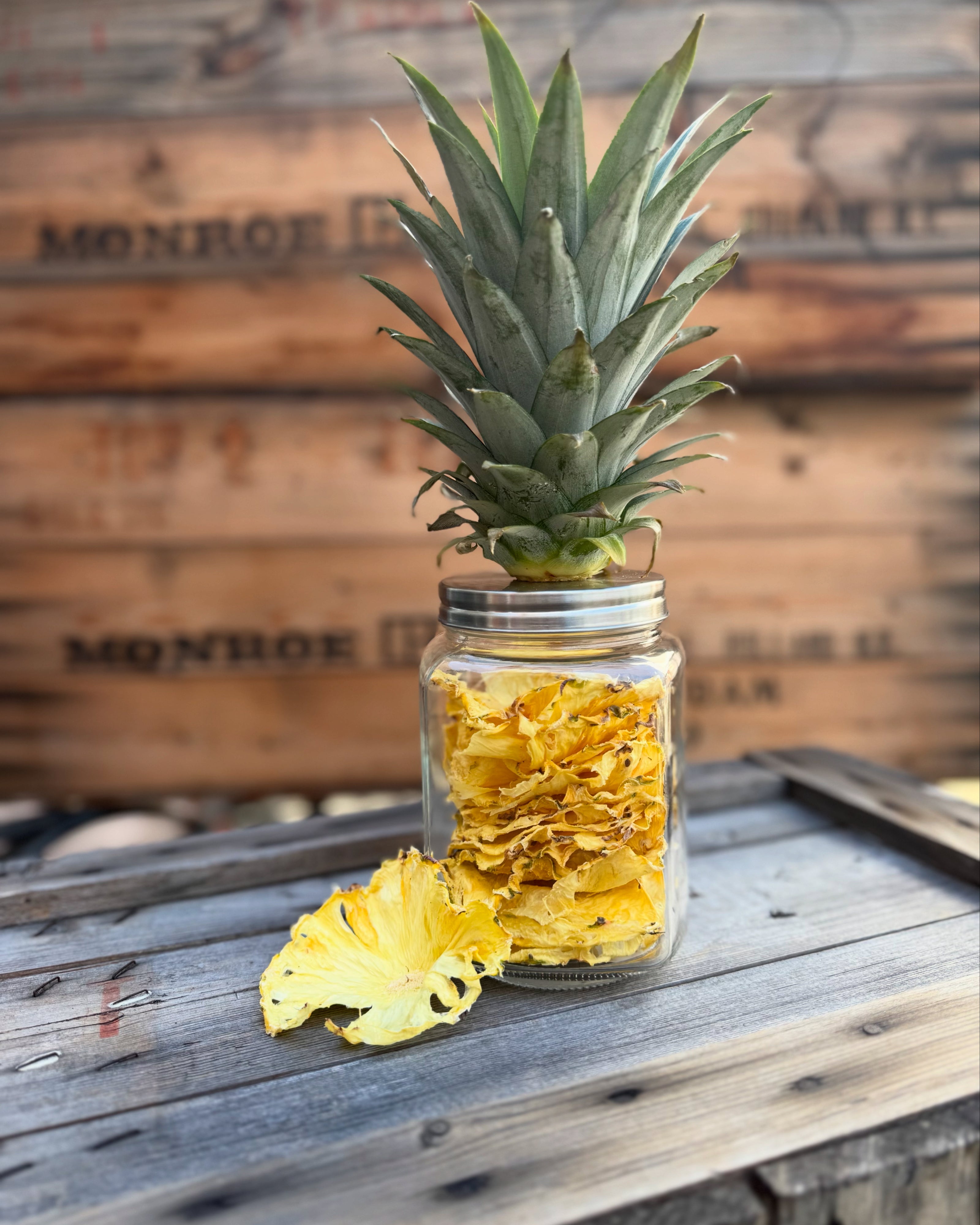 The Story Behind Our Tiki Blossoms | Our Tiki Blossoms start with perfectly ripe pineapples, sliced by hand and dehydrated slow and low to preserve natural sweetness and golden color. No shortcuts, no additives — just pure pineapple crafted into delicate tropical flowers. Every blossom is shaped and packed by hand for a sunny, island-inspired garnish made with care and heart.